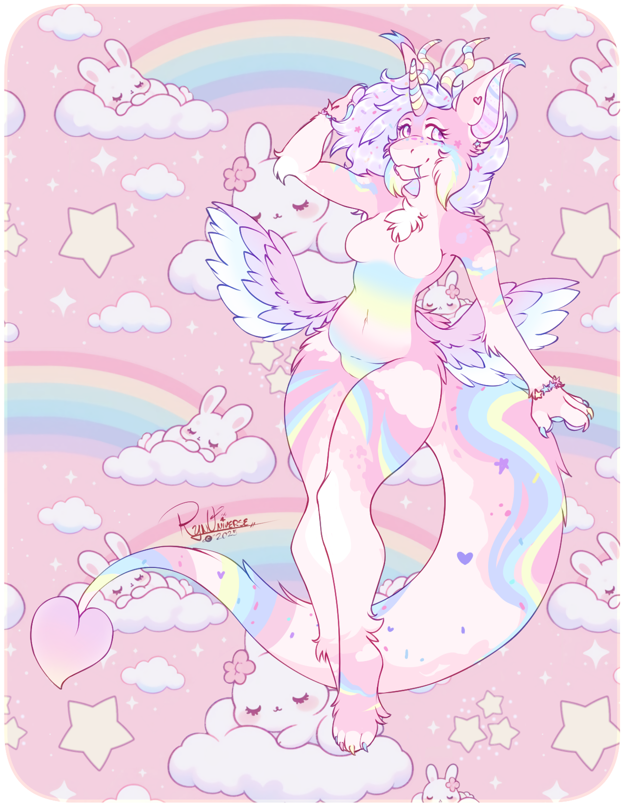 Prisma is a raimbow unicorn KaijukumaPanda.KaijukumaPandas are a closed species by RynUniverse.◯ Single and open.
