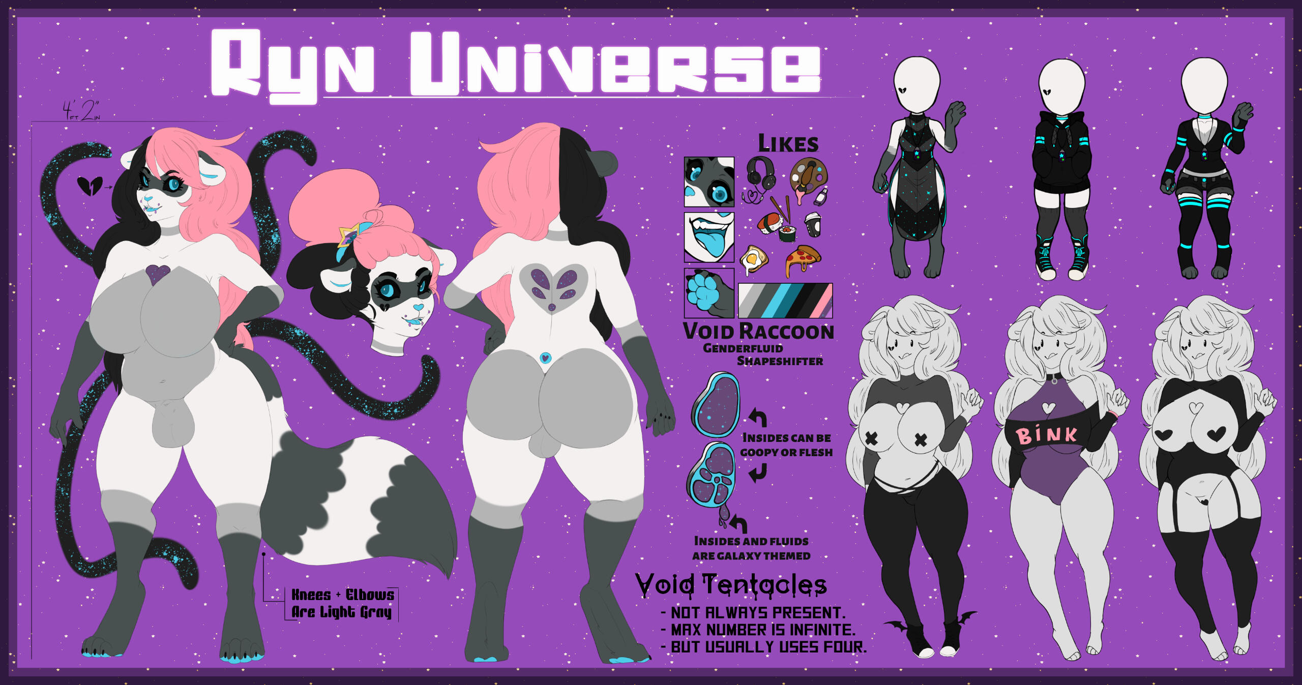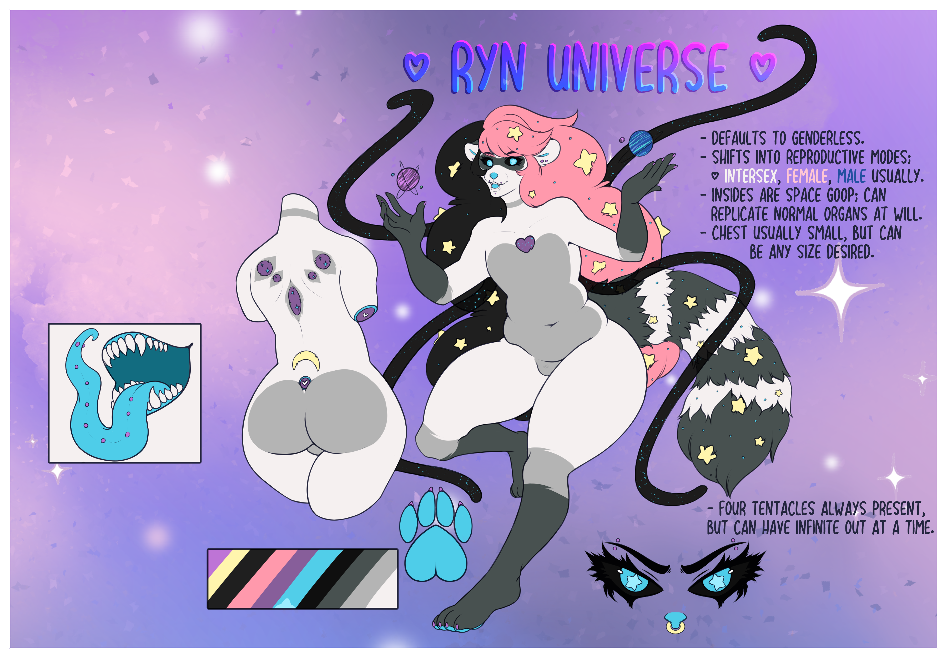 Ryn Universe is my main fursona.She is The Creatii of her world, but is a shapeshifter. She's super lewd, flirty, blunt, and hyper-affectionate. Her usual form is galaxies big, so she sticks to keeping her height about 4ft 2in to make herself seem less intimidating to others.⚭ Dating Candy.
